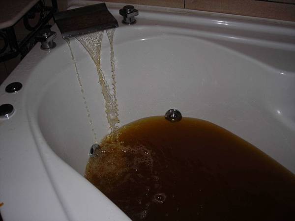 三樓的水龍頭已經有一些髒汙被沖刷出來